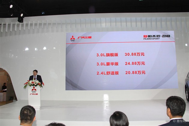 国产帕杰罗·劲畅今日于成都车展上市并公布售价。新车将会推出2种排量共3款车型,分别为2.4L舒适版、3.0L豪华版以及3.0L旗舰版。此外广汽三菱还宣布国产帕杰罗·劲畅将于8月30日期实施新的三包细则。详细车型价格见下表: 车型 售价(万元)