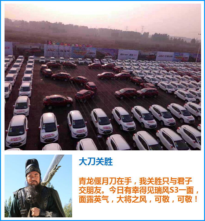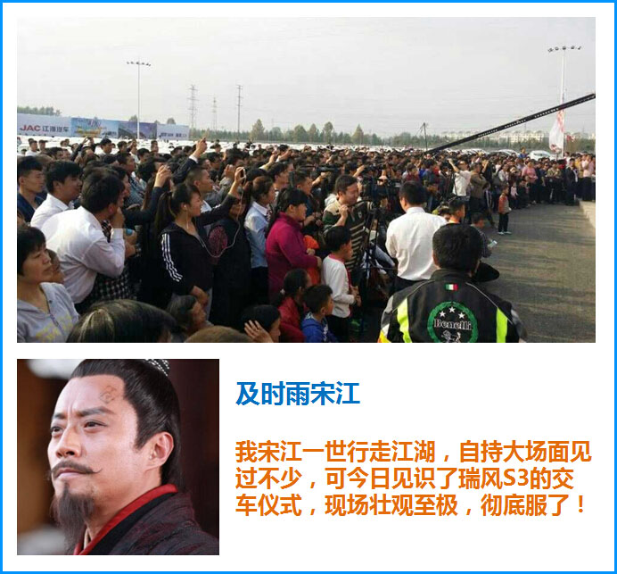 话说瑞风S3千人交车盛典,有几位梁山好汉乱入,目睹了这一盛典,下面就让我们看看他们眼里的瑞风S3千人交车仪式是什么样子的吧!