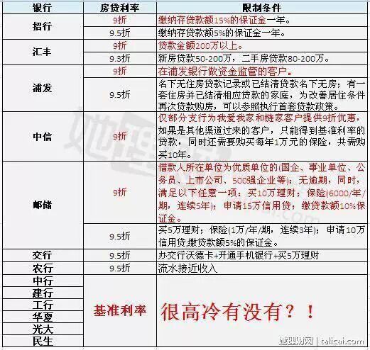 虽然首套房能享受贷款利率优惠,不过截止目前还没有银行能给到7折的贷款优惠,纵览各家银行目前的首套房利率情况,能获得9折利率就算很不错的,而且往往会附加其他限制,她理财整理了各大银行最新贷款利率优惠见下表: