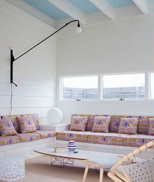 客厅里明亮的白色调沉静温和,而其中的木质家具,配合白色的雕花镂空边几,田园风格特有的明净清爽的感受扑面而来。艳丽的坐垫在客厅朴实的整体设计中作为点睛一笔,让人倍感温暖而不觉得突兀。