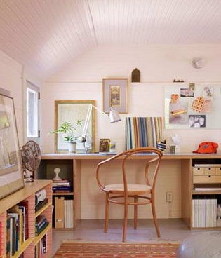 书房里淳朴的原木家具,线条简单且不修边幅,简洁有力地传递出田园风格的意象。标志性的全木材运用更是将田园风情演绎得惟妙惟肖。