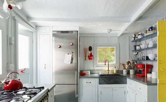 因整个公寓里的木材运用已经太多,不锈钢材质厨柜的轻灵起到了中和作用。厨房设计安装了规整的墙面收纳空间,不仅使用方便,更是别具个性和生活美感。