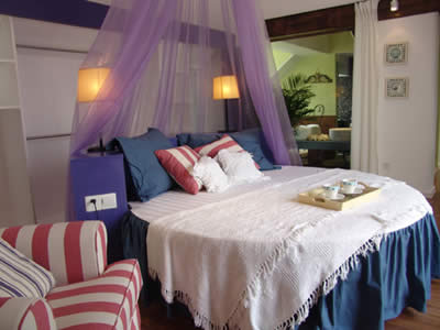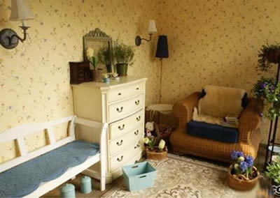 家具尽量采用低彩度、线条简单且修边浑圆的木质家具。地面则多铺赤陶或石板。