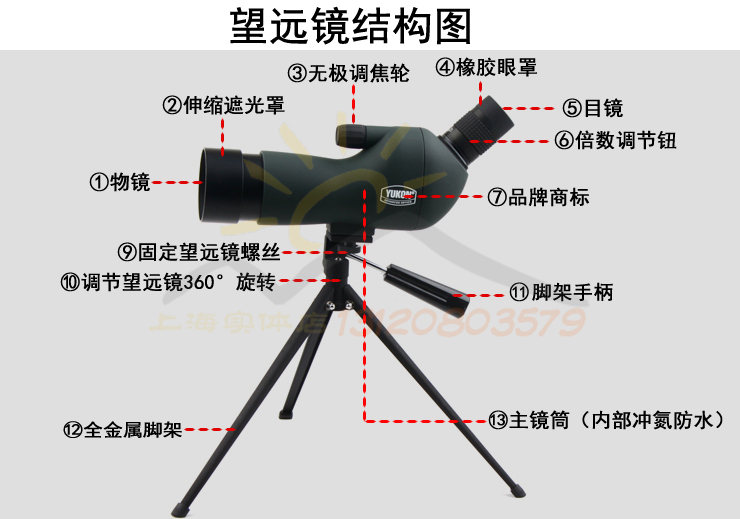 YUKON 观靶/观景/观鸟望远镜 高倍 变倍 变焦 单筒望远镜 观鸟镜