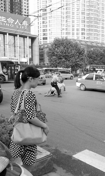 不一会,现场看热闹的市民多起来了,刘某想借此将事态扩大,突然躺在地上装成很可怜的样子。杨警官和另一民警将他扶起搀到路边后,刘某再一次冲到马路中间躺在地上。