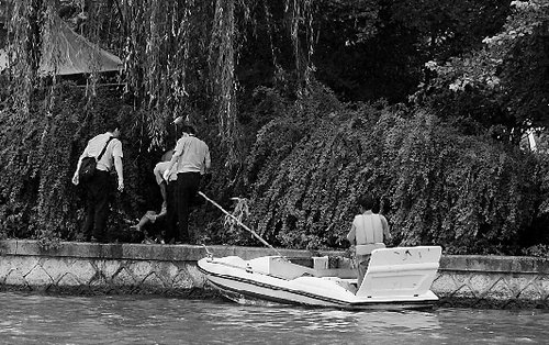 昨天上午9点多,他和几个同事分区域在打捞垃圾,有位同事看到河里好像飘着人,离河西岸不远,已经浮起来了,他们马上报了警。“后来因为河西岸有铁栅栏,打捞不方便,就拖到了河东岸。”这位师傅说。