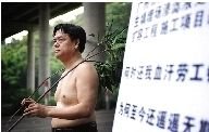 老板无钱付薪光膀子持树枝跪对讨薪工人(图)