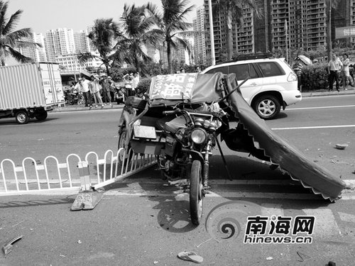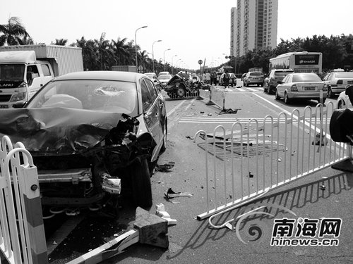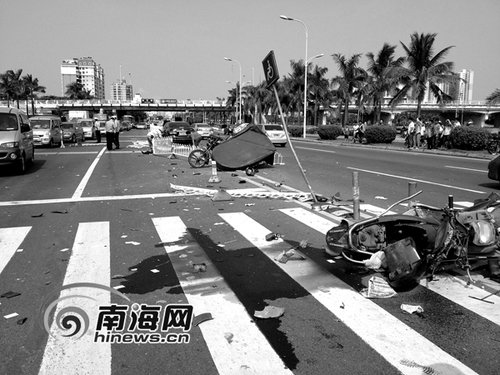 海口一轿车斑马线上连撞3车致1死3伤(图)