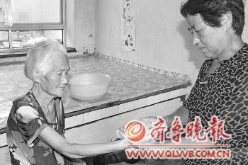 ◤刘桂芬每天都要帮婆婆洗脸、擦手。