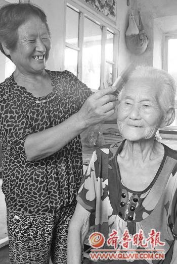 ▲刘桂芬帮婆婆梳头。 今年66岁的刘桂芬是威海市环翠区桥头镇雅格庄的普通村民,一个平凡的农家妇女,却是一名勤俭持家的好妻子、甘心付出的好母亲、尊老敬老的好儿媳。她在前夫去世后,重新组合家庭,赡养四家老人、抚养两个家庭的6个子女,并在子女和老人患病期间不离不弃,潜心照料,以坚强的意志,支撑着这个贫穷但却温馨的大家庭。 不幸的他们重组一个大家庭 刘桂芬出生在一个贫困的农民家庭,1972年,刘桂芬与前夫韩明辉相识结婚,并育有三个子女。可天有不测风云,在第三个孩子不到十岁的时候,疾病夺走了韩明辉的生命。在遭受丧夫之痛的打击后,刘桂芬曾一度萎靡不振,情绪低落,觉得生活失去了意义和方向。但看着三个未成年的孩子,还有年迈的婆婆,为人母、为人媳的她,毅然咬紧了牙关,用柔弱的双肩挑起了家庭的重担。 1986年,经人介绍,刘桂芬和同是早年丧偶的韩明晨相识,并组建了新的家庭。此时的刘桂芬带着3个未成年的儿女,要照顾自己的母亲和前夫的母亲,韩明晨也有三个未成年的儿女,还要照顾60多岁的母亲和前妻的母亲。6个需要抚养的孩子,4个需要赡养的老人,这对于家庭条件一般的刘桂芬和韩明晨来说,无疑是一个非常巨大的考验。 刘桂芬说,以前都不知道银行门朝哪儿开,喂猪卖的钱都得一分一分数着花。但现在孩子们都大了,家里好过多了。 就是借钱也要供孩子上学 早些年,刘桂芬还是幼儿园的老师,一个月有250元左右的工资,韩明晨是村干部,一年有800多元的工资,这点钱对这个大家庭来说,实在微薄。就算日子过得再紧,刘桂芬绝对一碗水端平,每年“六一”和春节,她会给每个孩子置办一身新衣服,让孩子们高兴。 虽然家庭贫困,但刘桂芬总是鼓励孩子要好好学习,将来成为一个对国家和社会有用的人。韩明晨的小儿子乖巧听话,读书很用功,但当时的家境,生计都成问题,哪来的钱供孩子上学呢?韩明晨曾劝儿子放弃,但刘桂芬不同意,说就是借钱也得供孩子上学。终于小儿子以优异的成绩考上中专,毕业后被港西医院录用,成为了一名乡镇医生。 韩明晨的大儿子患有类风湿病,多年的疾病让他饱受痛苦,还要支付高昂的医药费。刘桂芬总是省吃俭用,把钱给儿子治病,默默地在背后支持儿子、鼓励儿子。 刘桂芬说,年轻时不知道累。当老师的时候,她白天上班,晚上还要值班。白天上班时常常要匆匆回家蒸一锅馒头,晚上值班回来还要洗一家人的衣服,周末还要上山干活。这一坚持,就是一二十年。 四家老人的好女儿好儿媳 前夫过世后,除了自己的母亲,刘桂芬依然照顾着婆婆,从无半句怨言。俗话说,久病床前无孝子。然而刘桂芬的婆婆却是久病床前有孝媳。老人生病期间,她不怕脏不怕累地端屎倒尿、送衣送饭,一直悉心照顾到老人88岁离开人世。 对韩明晨的母亲和他前妻的母亲,刘桂芬同样孝敬有加,平时做了什么好吃的,总要先端给老人尝尝,换季时,总不忘及时为老人添置衣服。此外,每天陪老人说话聊天,缓解老人的烦闷。两位老人逢人就夸自己有个好“女儿”。 14日中午,刘桂芬看见婆婆有点出汗,便将她搀进屋子,打来温水给她洗脸、擦手。刘桂芬的孙女看见奶奶侍候太奶奶,也上前搭一把手。洗完脸后,她再帮婆婆梳妆一下,老太太笑得合不拢嘴。而在里屋的墙上,一面道德模范家庭的奖牌默默地向人们诉说着这个家庭的温馨。 2011年,刘桂芬获得环翠区第二届道德模范孝老爱亲模范称号。刘桂芬说,如今苦日子总算过去了,6个孩子都各自成家、生儿育女,每年过年的时候,看着一大家子其乐融融,她就知足了。