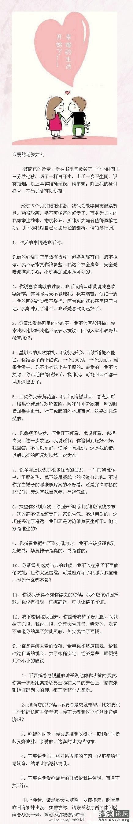 吵架后一个老公的检讨书...妞儿们,找个这种老公嫁了吧 ...