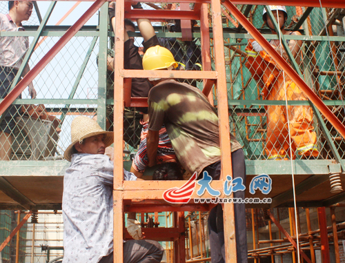 江西吉安一女工工地上“倒栽葱”卡在夹缝中(图)