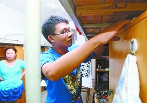 吴博文在整理寝室。