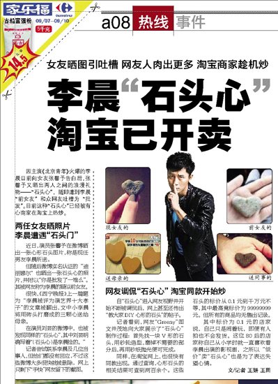 李晨遭遇“石头门” 同款“石头心”淘宝开卖 ...