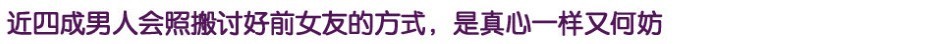 还有25%的男人坚称,拿出对待“前任”那一套来对待“现任”完全是出于爱。当初我爱她,现在我爱你,若不是因为真爱,我还不这样做呢!
