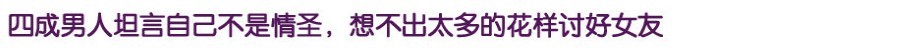 49%的男人只有在重要时刻或特殊场合时才会为女友准备礼物或制造浪漫,他们知道女人往往更渴望重要时刻的浪漫,认为平时不必太花心思。