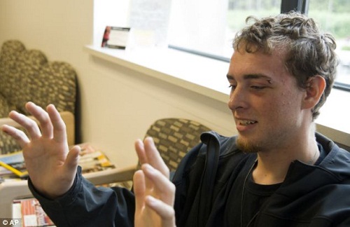 由于在海上时死死抓住塑料箱,哈里斯的双手磨出了水泡