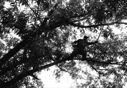 打山核桃时,矫健的身手和出色的心理素质自然必不可少,矮一点的树站在地上就能打到,而高一些的就必须爬到树上去才行了。在树上打也是非常危险的,既要保证用足了力把山核桃都打下来,也要留一分力把身体稳在树上,以免掉下来。