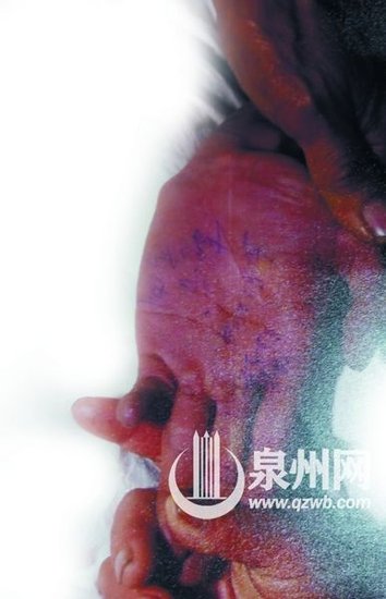 13年前,时年28岁的晋江市英林镇玉坂村人洪源望在外出讨债时被发现昏死路边,最终离开人世。在他的手掌上,有一串谜一样的文字。13年来,洪源望的家人一直在寻找洪源望的死因。昨日下午,洪源望的弟弟洪源鸿带领家人来到早报求助,他们想悬赏100万元,寻求解谜线索。