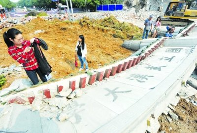 武汉大学牌坊拆除 学生拍照抢石块留念(图)