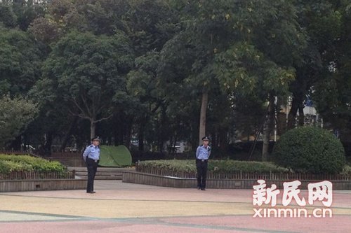 记者在现场看到,警方正封锁花坛出入口,并对现场进行勘察。