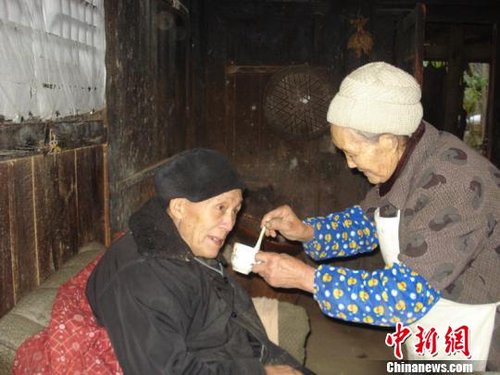 图为马明芝给瘫痪在床的老伴喂药 给老伴儿喂饭、擦身,为老伴儿讲故事,教老伴唱山歌……重庆酉阳县黑水镇大涵村71岁的马明芝每天悉心看护着瘫痪在床的丈夫冉崇润,如何把老伴照顾好是老太太9年来最大的心愿。 18日,记者一路循村民指点来到马明芝的家,眼前看到的是两间简陋的木房,其中一间看上去有些破烂。其时,马明芝正扛着两根毛竹从地里回来,“冬天来了,要把房子修补一下”。 9年前的一天,73岁的冉崇润在地里收割完烤烟,回家休息一会准备起床时,突然晕倒在地,口不能言。马明芝忙找来医生,被告知可能是中风。经抢救,丈夫冉崇润脱离了生命危险,但右侧身体完全没了知觉,医院检查确诊为脑溢血引发的半身不遂。自那时起,马明芝靠自己年迈的身体默默扛起了家庭重担,帮老伴翻身、擦身、料理大小便、喂饭、洗衣成了她每天必做的“功课”。。 记者在采访中了解到,在丈夫瘫痪卧床的9年里,马明芝每天早上6点就起床做饭,端到床前一口口喂给老伴吃完后,自己才随便吃点。待一切收拾妥当,她再拿着农具下地干活。 照顾一个瘫痪病人并非易事:9年来,马明芝没睡过一个囫囵觉,每晚都要起床两三次服侍老伴大小便;每顿吃饭,马明芝都要吃力地将老伴从里屋背到火铺,吃完饭又背回去;一旦天气变晴,马明芝还要把老伴从光线昏暗的里屋背到院坝里晒晒太阳……“现在年纪大了,背着他进出门槛都非常吃力,只有让他还有感觉的手、脚扶住门,我跪在地上慢慢挪动,才能背他出门见见阳光。”忆及此,马明芝眼圈有些泛红。 马明芝告诉记者,丈夫现在只要稍稍不舒服就会大喊大叫,家里必须随时备着药丸。每逢赶场天,马明芝都会到镇上药店买些药在家里备上。 “这么多年,三娘(马明芝)一直悉心照顾着瘫痪病人,从来没抱怨过,在我们村找不到第二个了。”邻居李书云慨叹。 据李云书介绍,9年来,马明芝四处寻医问药,听说哪个医生好就想法儿请来为丈夫冉崇润看诊,听说哪种药好也竭尽所能买回家让老伴服用。家里没有其它经济来源,马明芝每月仅靠着补助的几百元艰难度日,除去给冉崇润买药的钱已所剩无几。周围邻里纷纷劝她放弃医治(冉崇润),马明芝总是摇摇头拒绝,“少时夫妻老来伴,即使再苦再累,也要想尽一切办法给他医治,即使医不好,也要让他多活几年。” “这个病折磨我9年多了,多亏她照顾我,不然(我)早就到土城坝去了(重庆方言,意为‘死了’)。”躺在床上的冉崇润嗫嚅着红了眼眶。 “把他照顾好,是我最大的心愿”,采访结束时,马明芝紧紧拉着丈夫冉崇润的手,语气坚定,“只要还有一口气在,我会继续坚持下去的。”