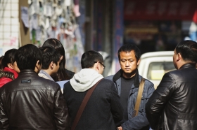 11月26日,马王堆陶瓷城,十多天的寻找并没有结果,孙欢友(右二)有些沮丧但仍在努力。 十多天来,马王堆陶瓷城,居民们经常会看到一名男子在小区里徘徊,有人甚至怀疑:他是不是小偷?