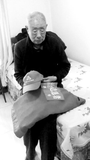 宫龙江老人整理着老伴执勤时的衣物