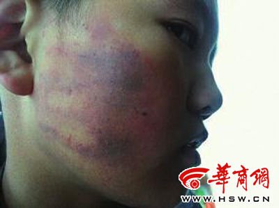 事发后第三天,小明脸上被打的痕迹仍然明显