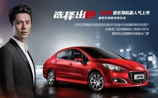 目前,根据东风标致官方表示,旗下新款308音乐导航版车型在1月1日正式上市,新车的官方指导售价为10.89-14.69万元,音乐导航版售价只是在现款车型版本的基础上增加了5000元而已。另外,东风标致还将通过电子商务平台举行“308音乐导航版限时限量优惠”活动,消费者可以上网预订308音乐导航版并交付定金,之后到4S店提车时就可享受“立减千元”的优惠。
