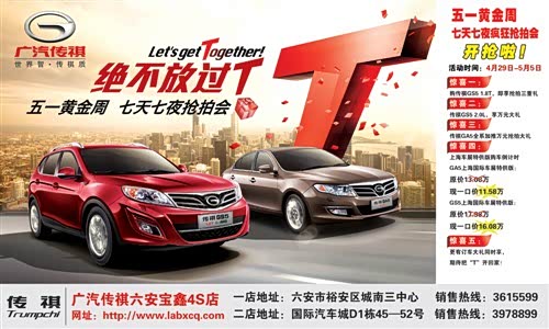 广汽传祺五一黄金周七天七夜抢拍会进入倒计时,最后两天限时抢拍,抄底价绝对不容错过,趁这个周末,来传祺宝鑫