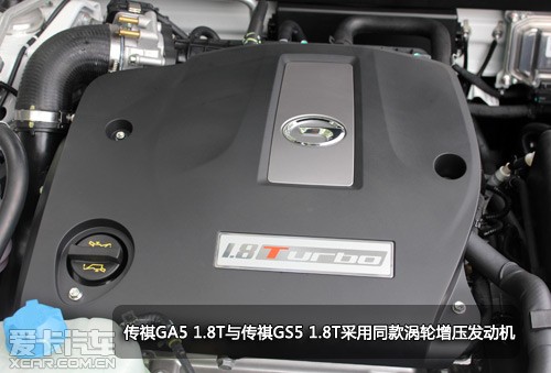 动力方面,传祺GA5 1.8T与传祺GS5 1.8T采用同款涡轮增压发动机,其最大功率为130kW/5250rpm,最大扭矩为237Nm/1700-5250rpm。发动机盖同样采用了双液压挺杆的设计,带有面积较大的隔音棉。与1.8T发动机匹配的依旧是那款5速手自一体变速箱。