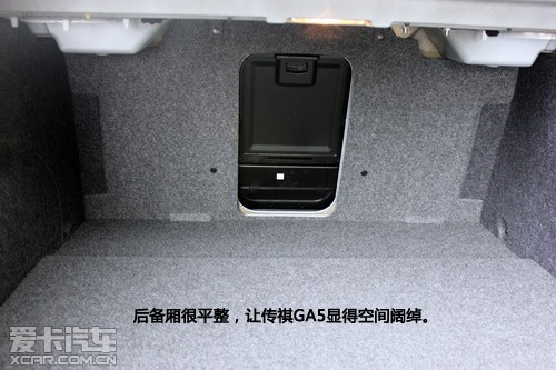 传祺GA5后排座椅舒适性还不错,但由于中间凸起较大,不建议三人乘坐。后排带有空调出风口及中央扶手,后排中央扶手带有杯架和储物格,同时与后备厢连通,方便拿取小件物品。