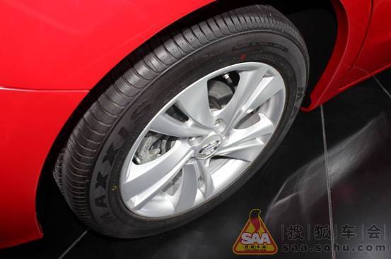 轮胎特写。轮毂真酷啊,转起来估计更带感。