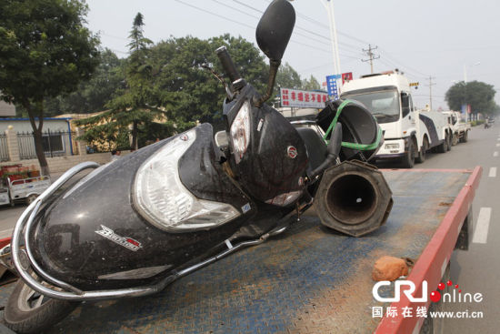 货车违规运超长钢板 骑车者撞上被削掉头部(图)