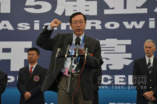 亚洲赛艇联合会秘书长Ken Lee在致辞中表示,很高兴亚洲赛艇锦标赛能够在具有悠久历史文化的六安举办,在这里,运动员们能增强他们的技能,为明年的仁川亚运会做准备,希望所有的运动员能够充分挖掘出自己的潜能,发挥出更好的水平,取得更好的成绩,在比赛中脱颖而出,冲出亚洲,迈向世界体育舞台。