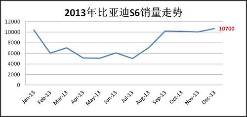 在刚过去的2013年12月,比亚迪S6继续保持热销态势,销量达到10700辆,为2013年收官战画下了完美的句号。回首上2013年,比亚迪S6可以说是硕果累累,不仅绝地反击重新杀回国内SUV top 10 行列,更是凭借大空间、强动力、高配置等五星价值体验稳居月销万辆俱乐部,同时也累计收获了20多万辆的销量和口碑。