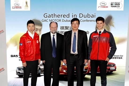 广汽传祺海外战略迪拜发布(图右二为广汽乘用车总经理吴松)