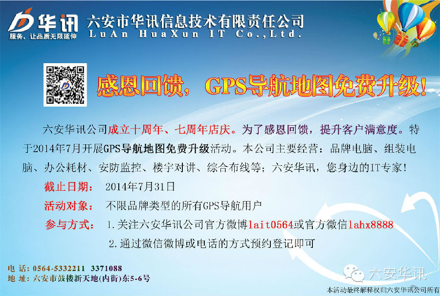 六安华讯公司店庆七周年-----【感恩回馈,GPS导航地图免 ...