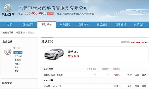 目前,六安风行汽车专门成立了网络销售渠道。足不出户,只要您一个电话或留下电话,就能随时随地了解我们六安风行汽车的最新优惠,网销专线:0564-2820799 。