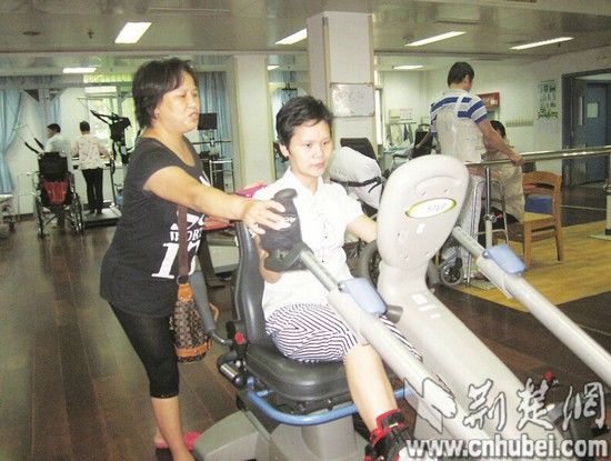 柯岚(右)在母亲陈珍宝(左)指导下,进行康复训练
