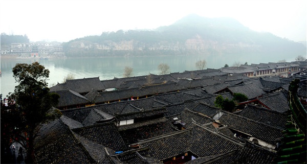 阆中古城,位于四川阆中新城的旁边、嘉陵江畔。古城阆中的建筑风格体现了我国古代的居住风水观,棋盘式的古城格局,融南北风格于一体的建筑群,形成“半珠式”、“品”字型、“多”字型等风格迥异的建筑群体,是中国古代建城选址“天人合一”完备的典型范例。