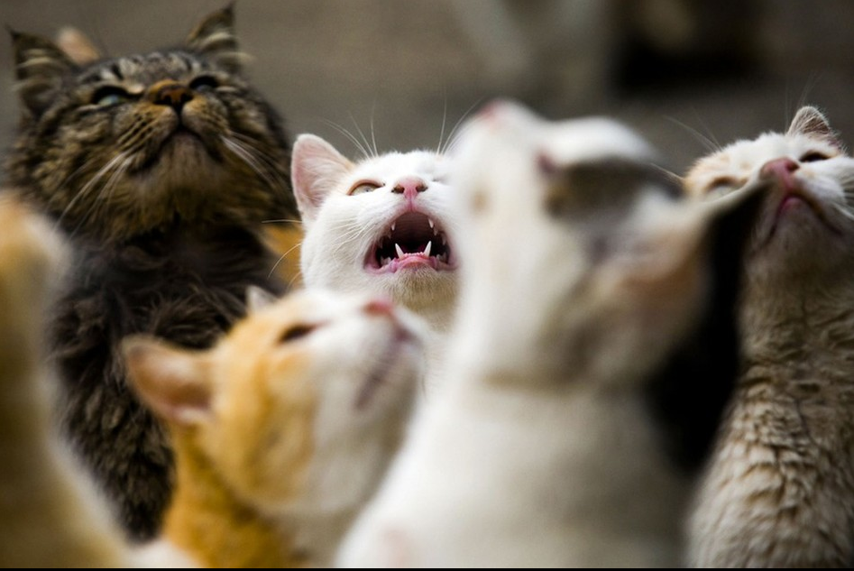 等待喂食的猫。