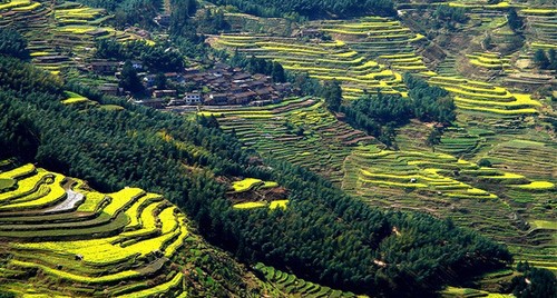 不去云南,在这里也可以领略到绝美的梯田胜景。油菜花开在梯田间,风吹云动,让人仿佛置身世外桃源。这些都是众多摄影发烧友的至爱。
