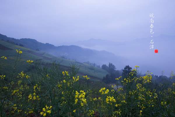 山坡上,山谷里,古宅旁,处处是色块、线条。金黄色的油菜花是这个调色盘中的主色调。一夜春雨过后的清晨,太阳还没露脸,云海就汹涌而至,山顶上的古村落在云涛中若隐若现,真一个天上人间!