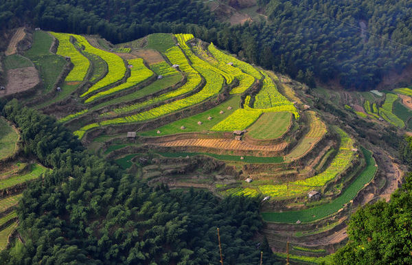 15号后高地势、梯田地带(像江岭梯田、北线深山区等)、气温比较低的山区里都仍将可以看到灿烂的油菜花。