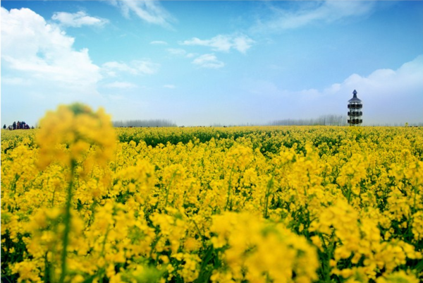 “河有万湾多碧水,田无一垛不黄花”说的就是兴化的油菜花。“兴化千垛菜花”位于兴化市缸顾乡,以千垛样式形成的垛田景观享誉全国。