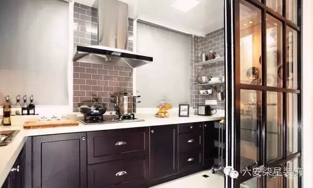 ▲ 厨房采用黑白搭配,墙砖用小砖工字贴法