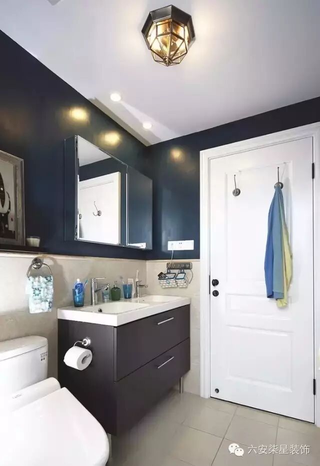 ▲ 卫生间下半瓷砖,上半卫浴漆
