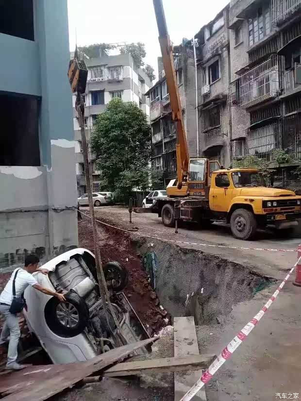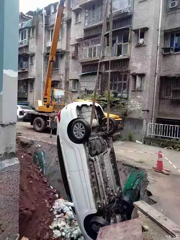 前几年出现了走路掉在下水道了,今儿网络爆红一组图片,开车掉坑里了,小编不得不为这位司机点赞啊,